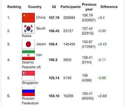 Погрешность Глобального Рейтинга Интеллекта - 2025 минимальна: это исследование основано на данных более 1,35 миллионов человек по всему миру, которые прошли аналогичный тест на уровень IQ в 2024 году. Средний показатель IQ по странам, как правило, выше в Восточной Азии, а в Европе, Северной Америке и Северной Африке он близок к среднемировому показателю.