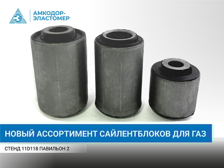 Так, ЗАО «Амкодор-Эластомер» на площадке выставки «ШИНЫ, РТИ и каучуки» представляет новый ассортимент сайлентблоков для нужд АЗ ГАЗ. Уже начаты регулярные поставки на конвейерную сборку, а также идет планомерная разработка новых ассортиментных позиций.